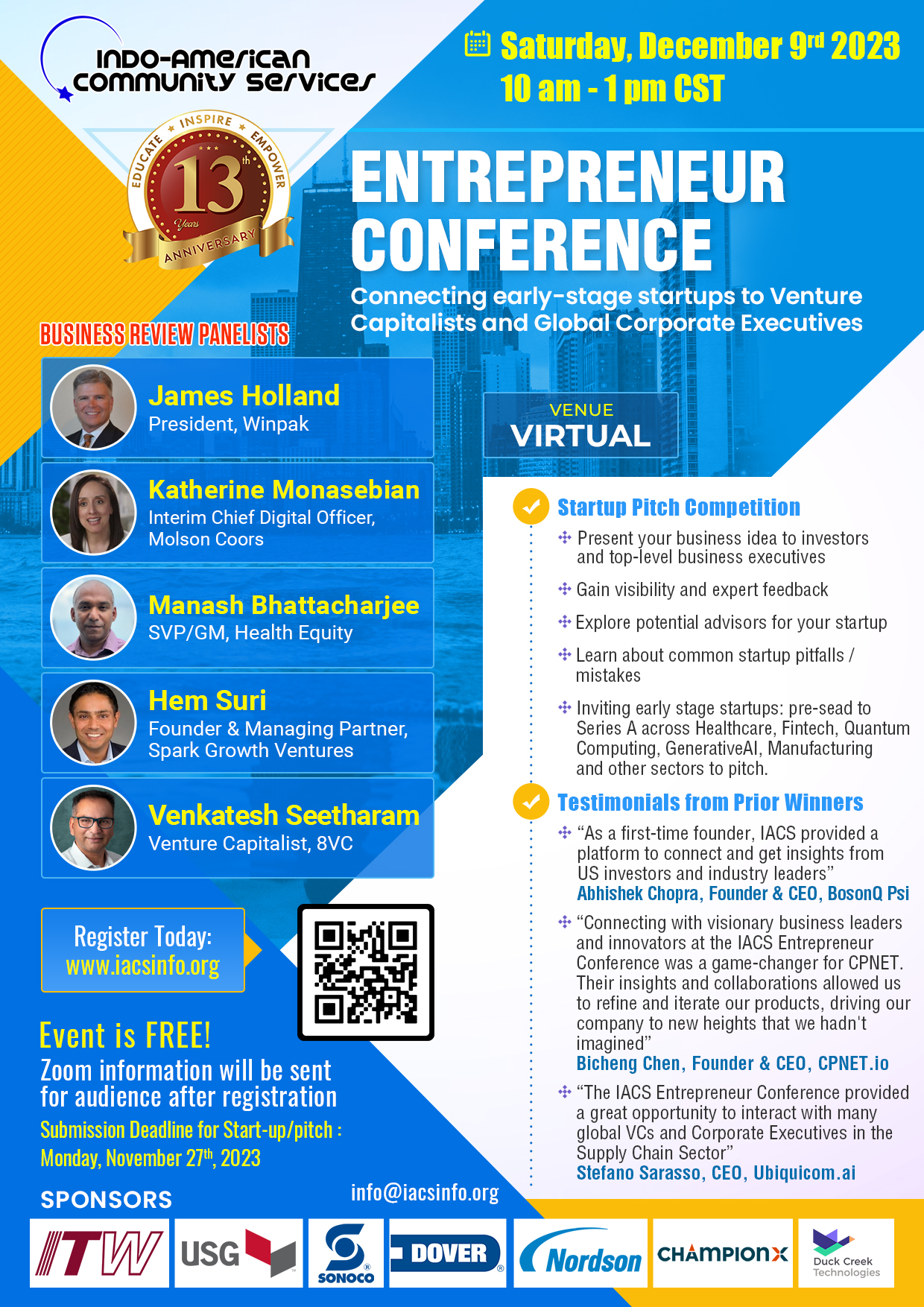 "The IACS Entrepreneur Conference provided a great opportunity to interact with many global VCs and Corporate Executives in the Supply Chain Sector"