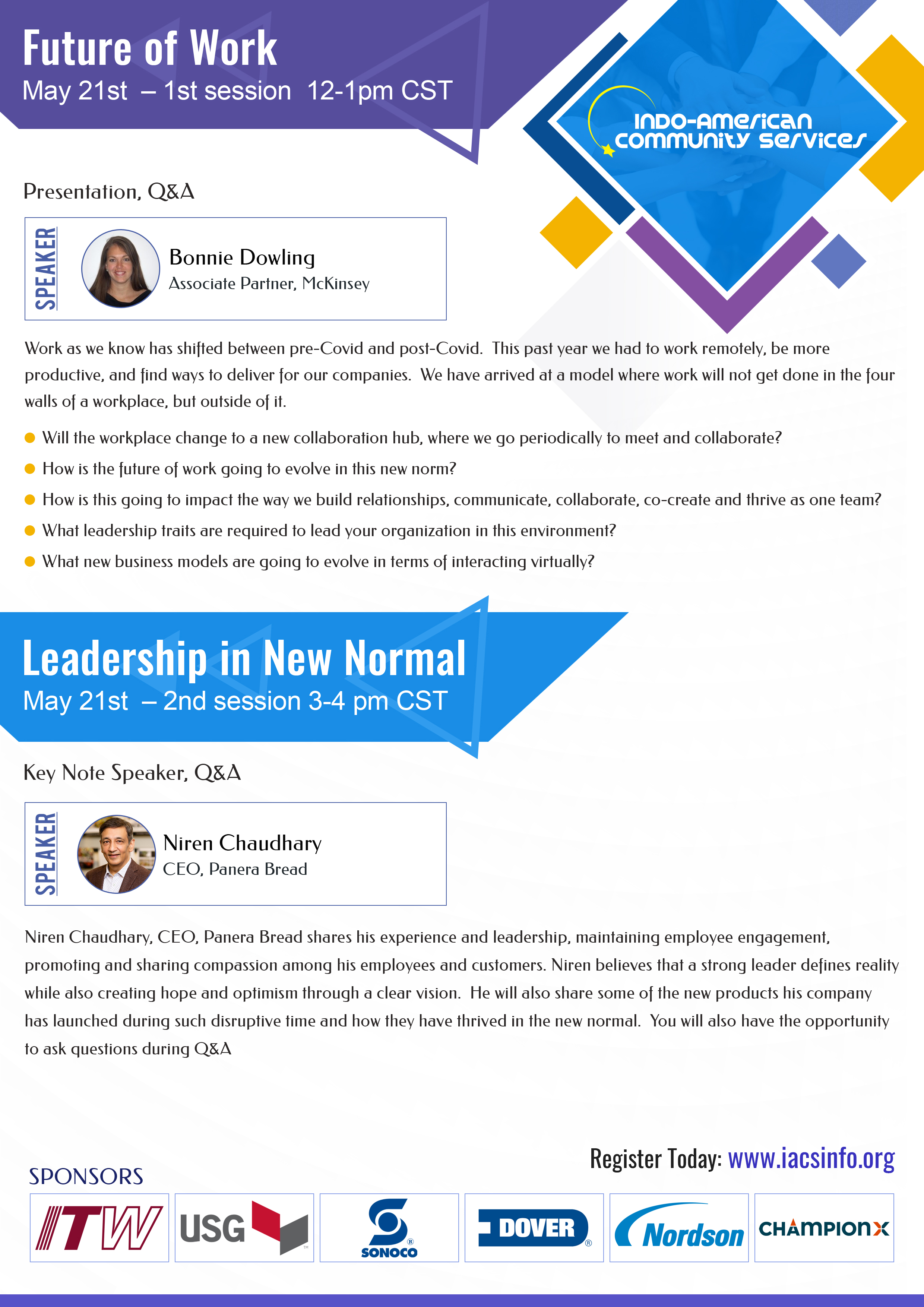 New Normal (We are not going back to pre-Covid) 3 Fridays 12-1pm and 3-4pm CST in May 2021 Register Here.